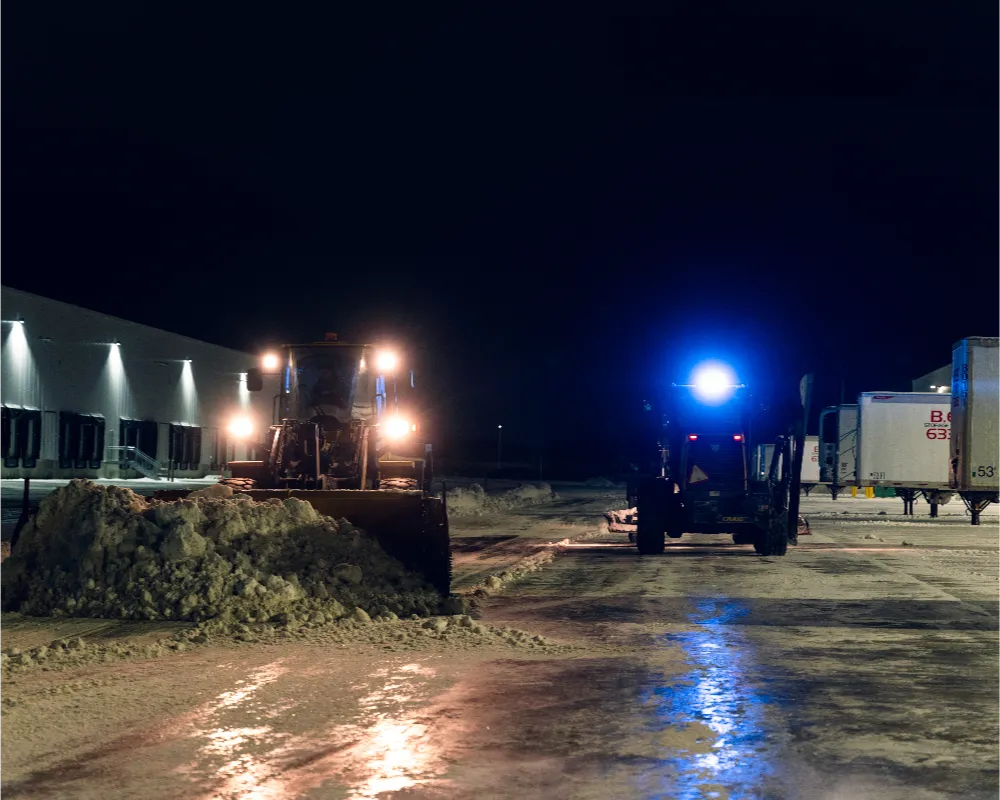 Snowfall does not follow shift schedules. Our crews operate 24/7 during winter conditions to ensure industrial sites remain accessible at all hours. Whether snow falls overnight, during production hours, or across multiple days, we respond as conditions require to keep access routes and work areas open.